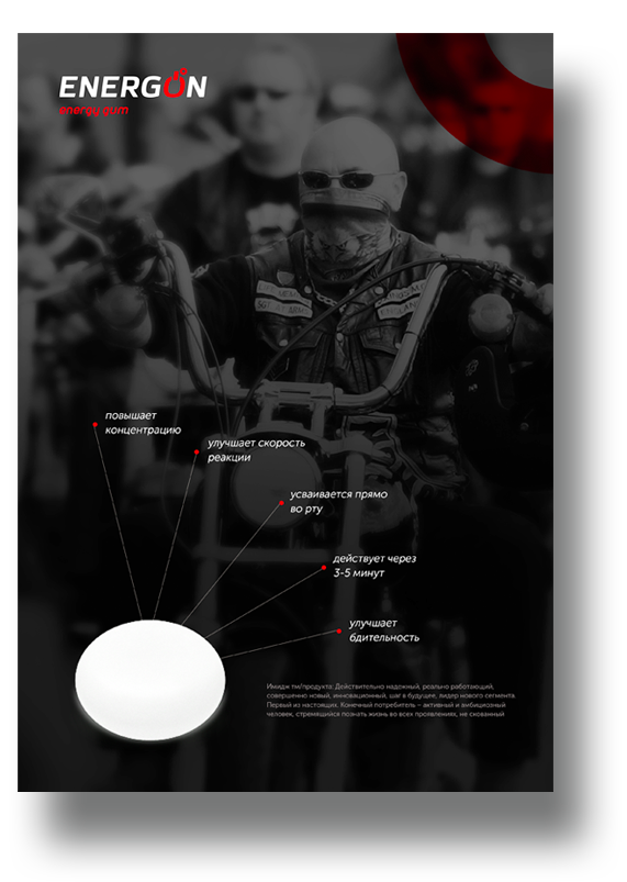 Жвачка рассчитана на продажу на заправочных станциях, придорожных магазинах и в крупных паркетах. Компания ЭнергоРус сама нам предоставила целевую аудиторию.